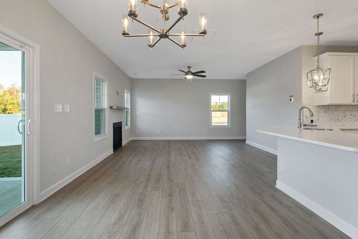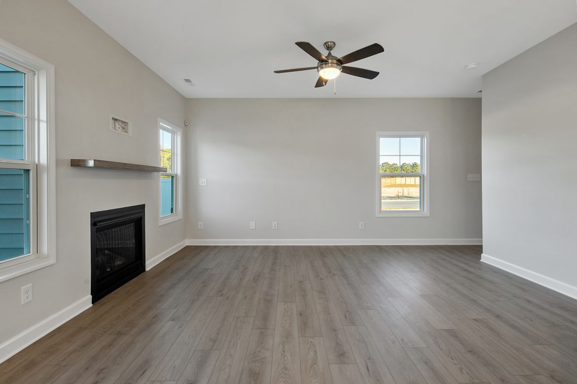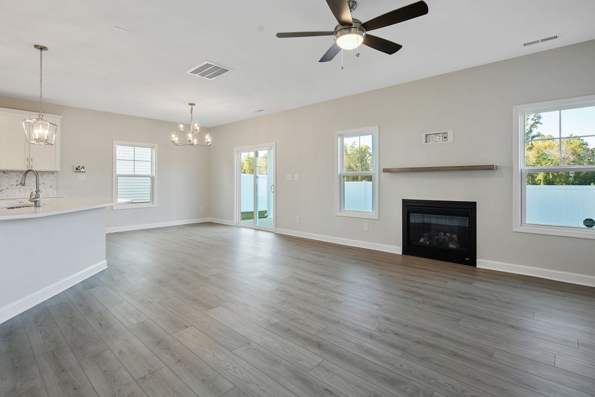 - Great room with optional fireplace and additional windows; access to covered porch and patio options