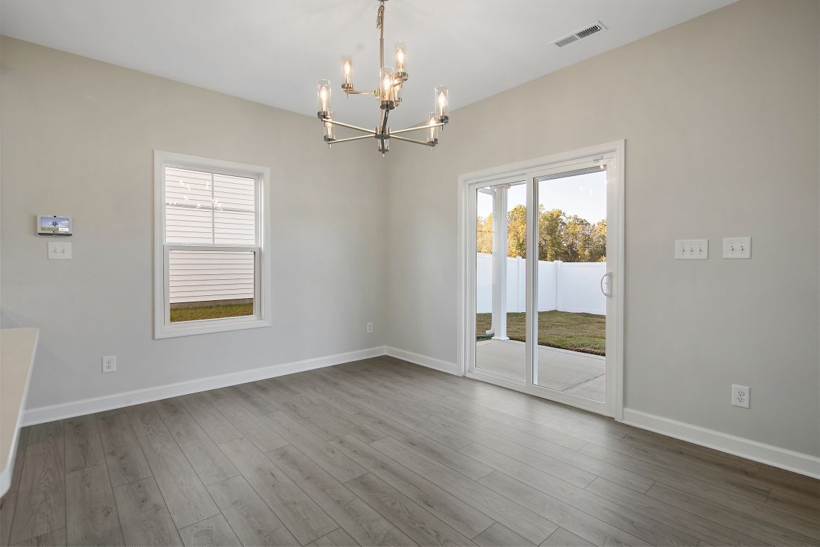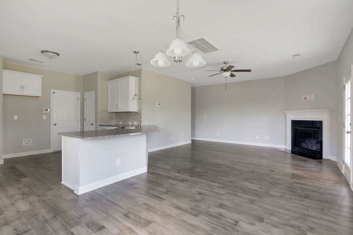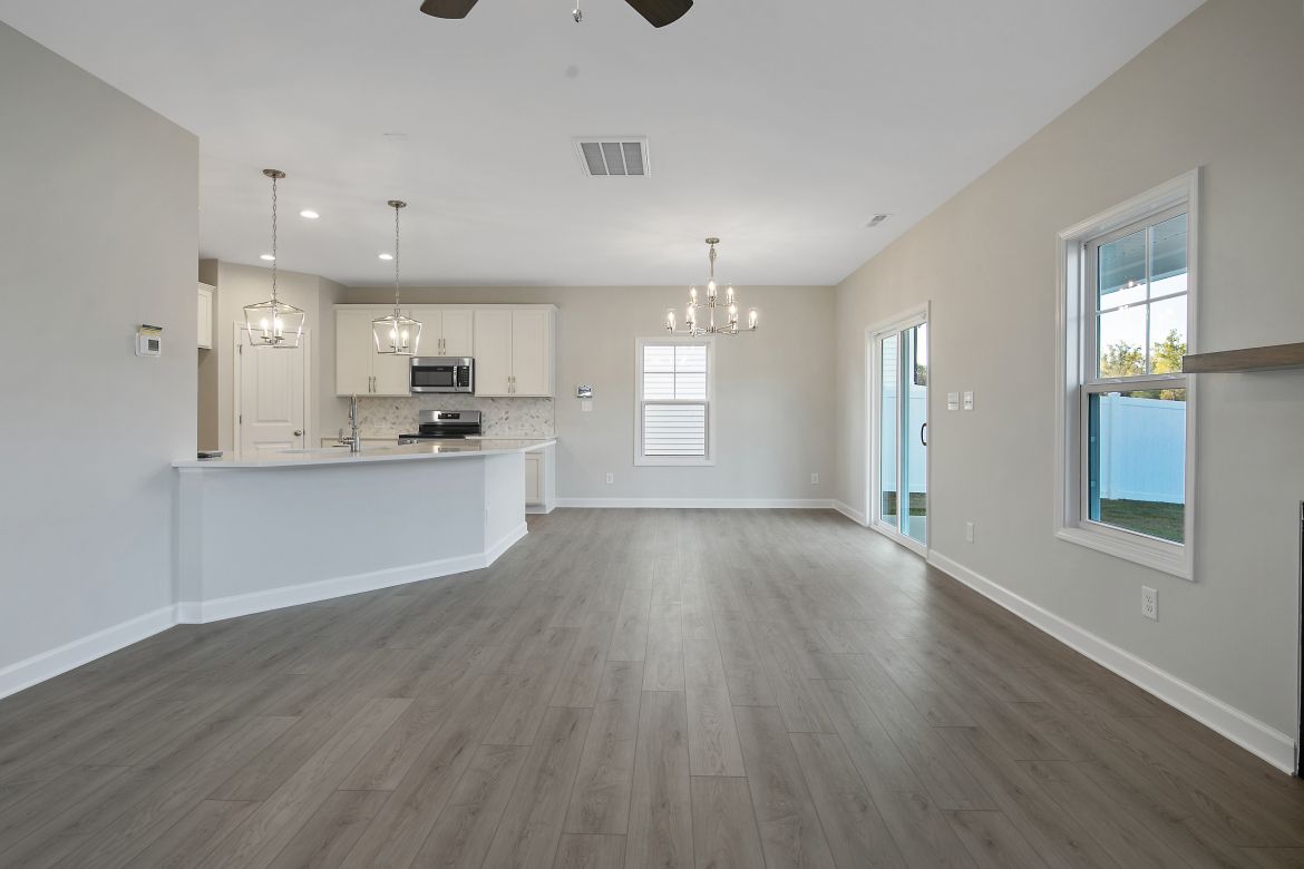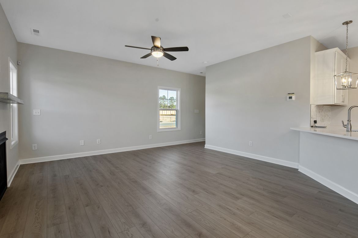 - Great room with optional fireplace and additional windows; access to covered porch and patio options