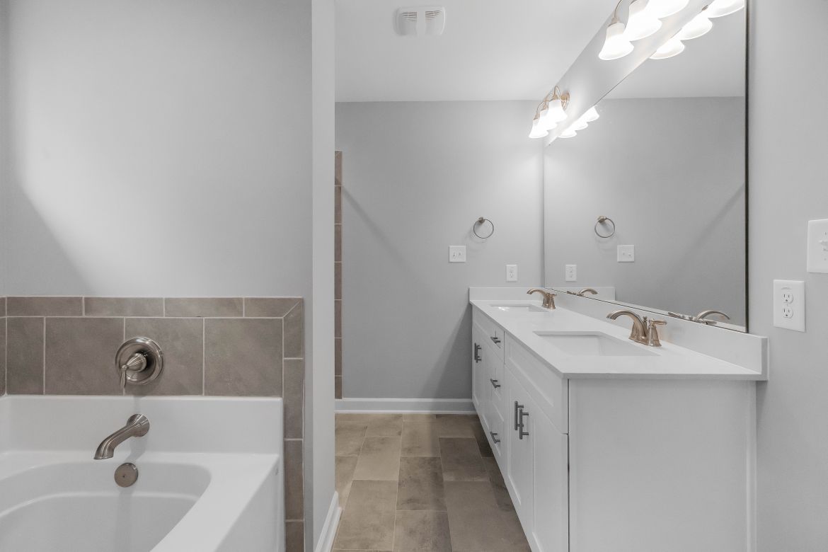 - Second floor features the Primary Suite with optional tray ceiling, walk-in closet with natural light, dual vanity sinks, and 3 tub/shower layout options