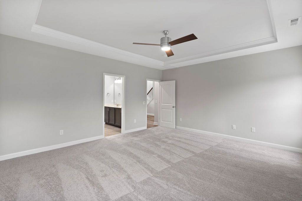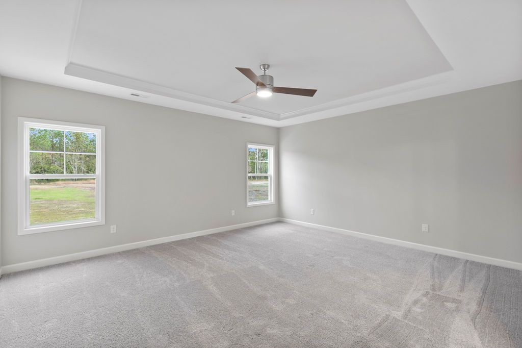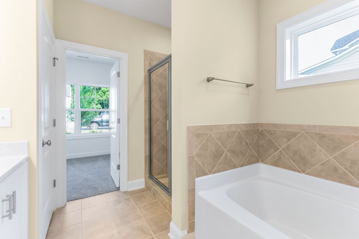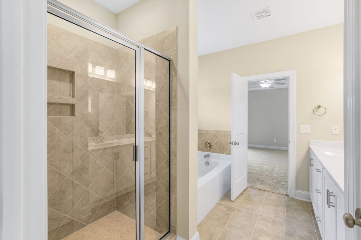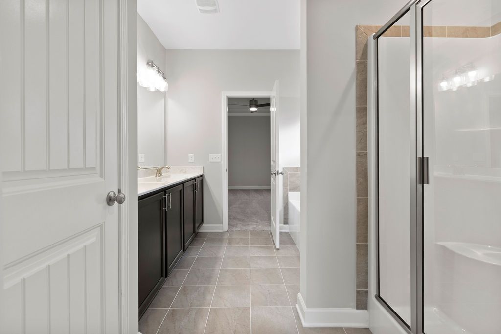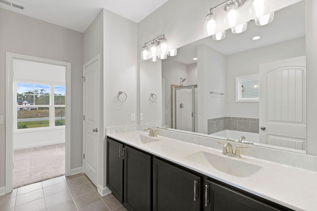 - Primary Suite located on first floor with optional tray ceiling, walk-in closet with double windows, dual sinks, private water closet, optional drawer stack in vanity and 3 tub/shower layout options.