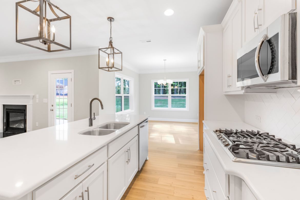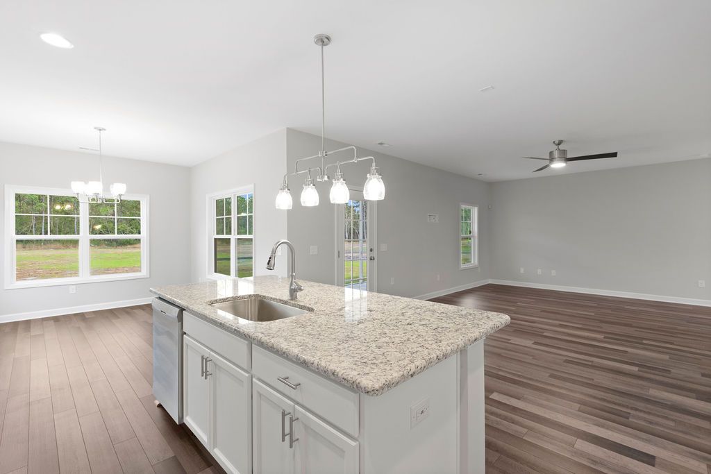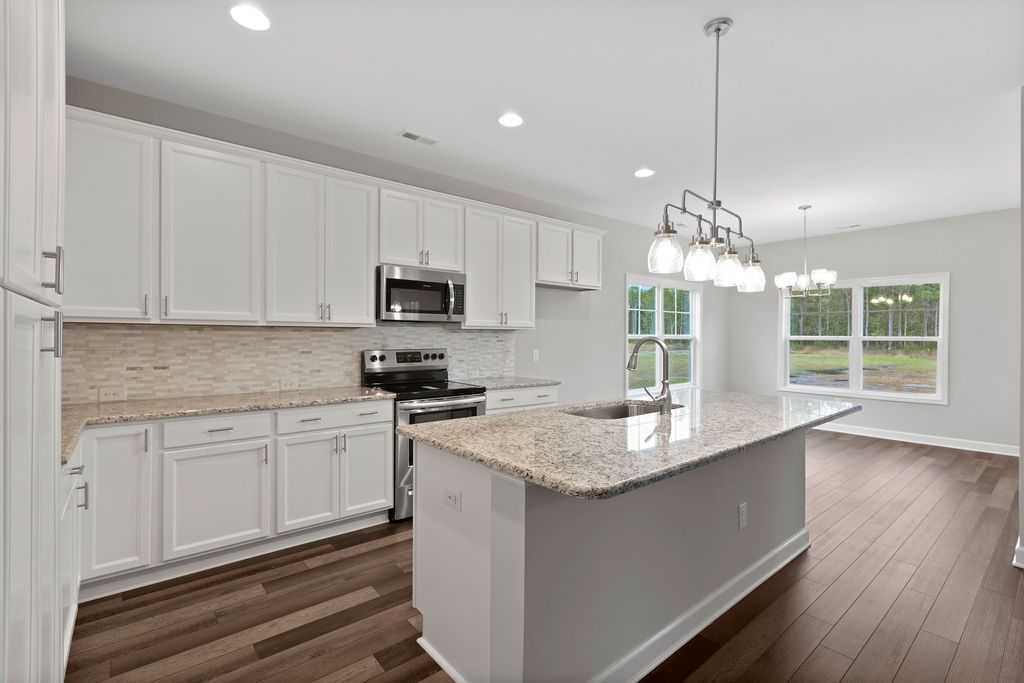 - Kitchen open to great room with island and gourmet appliance layout option. Connected to dining room with views to the back yard
