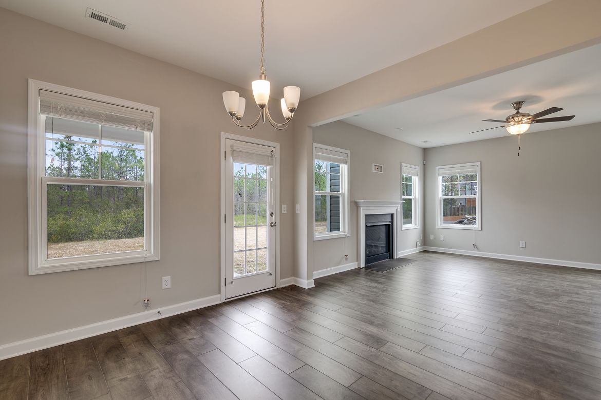 Walking up to this home you’ll notice it’s thin but tall appearance, this is great for smaller home lots or simply maximizing yard space on any lot. When you walk into the home you’ll immediately see the staircase leading upstairs, but if you continue walking down the hallway you’ll enter the great room. This room has a fireplace and connects with the dining room that has a view overlooking the covered porch and backyard. The kitchen has plenty of cabinet & counter space and is also attached to the dining room.